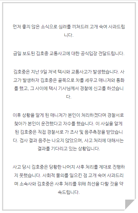 김호중 소속사 반응