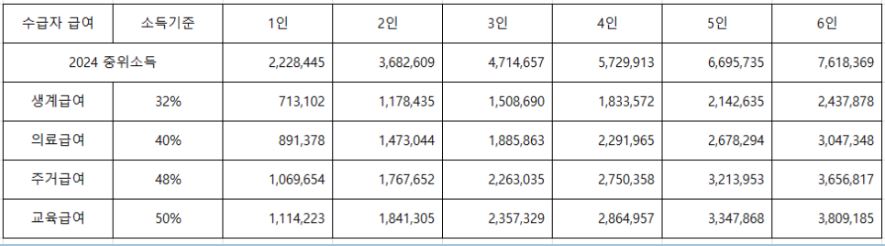 위 2024년 중위소득 을 기준으로 하여 재산 조건과 맞아야 합니다.